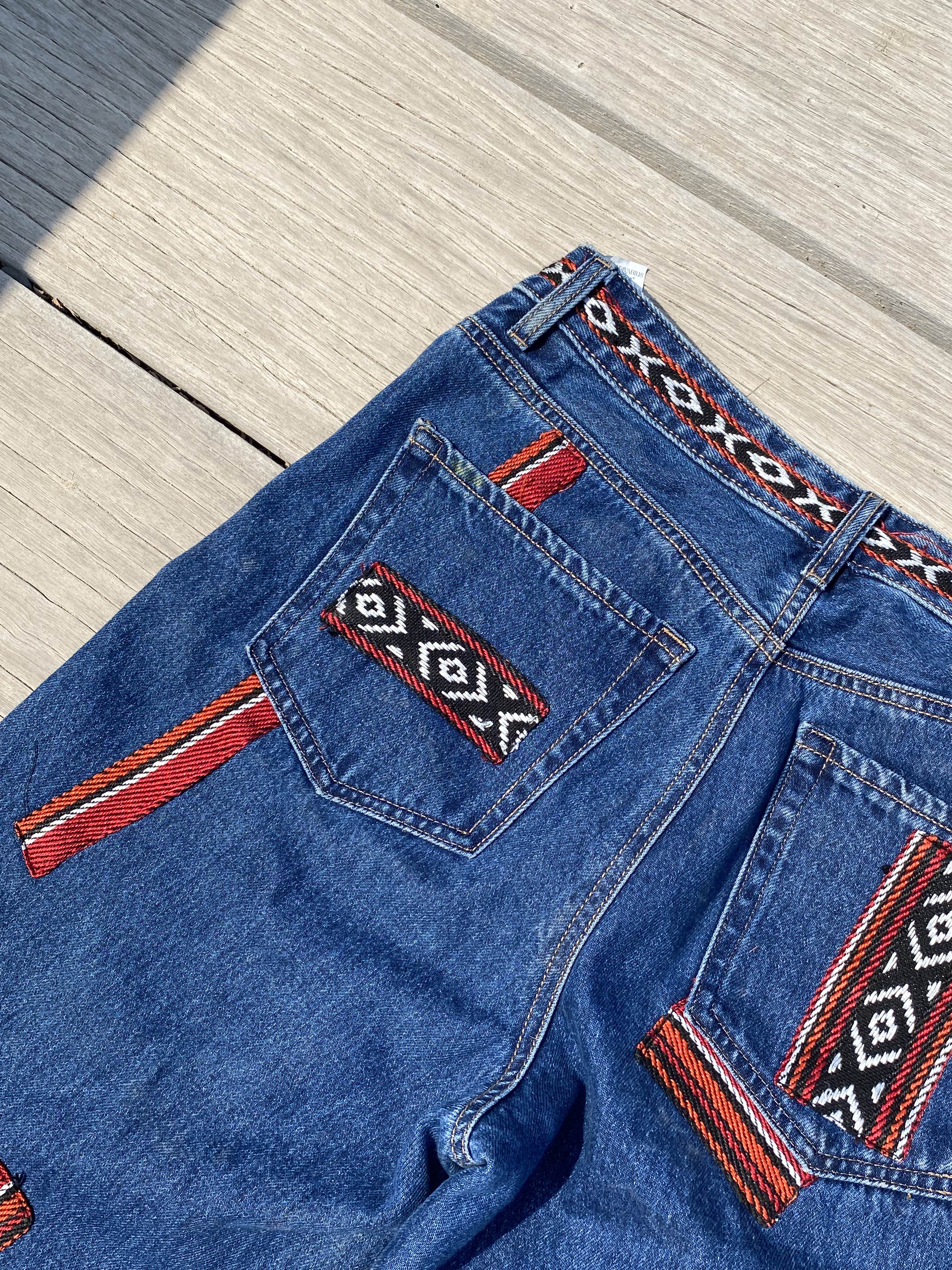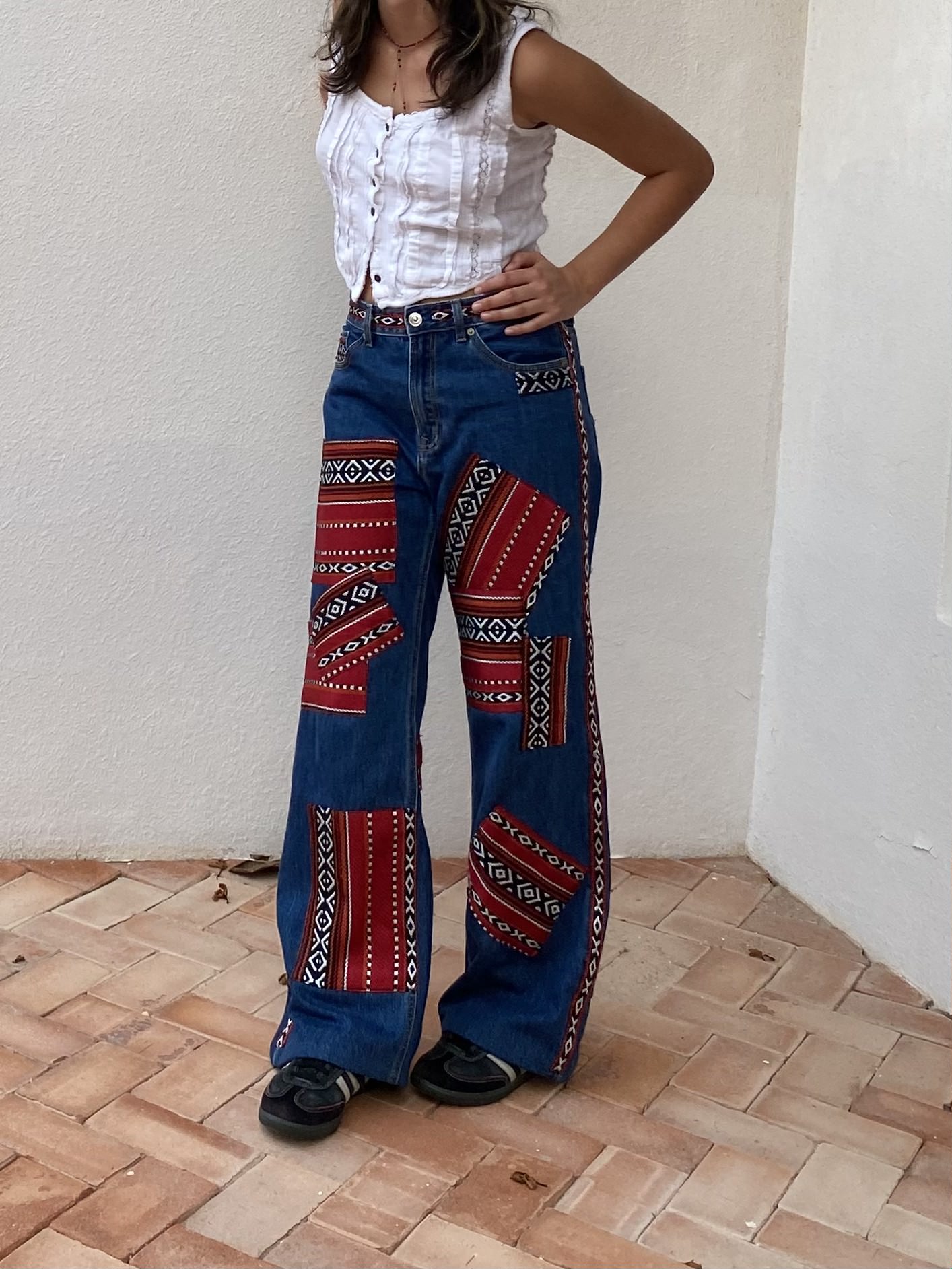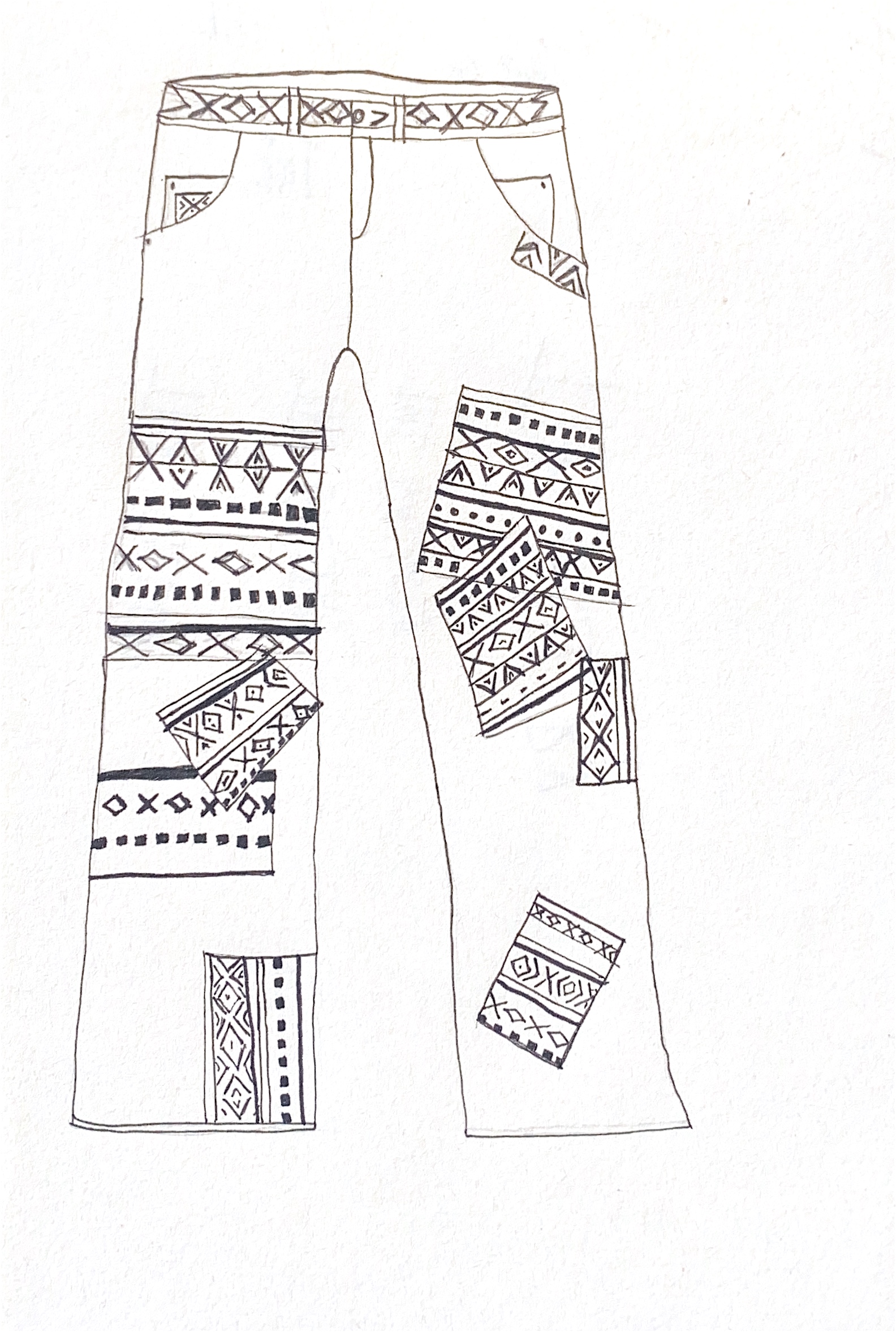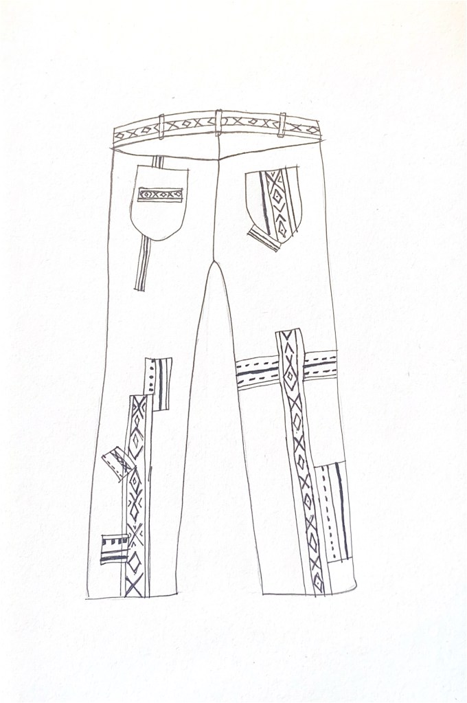 patchwork jeans inspired by traditional qatari patterns